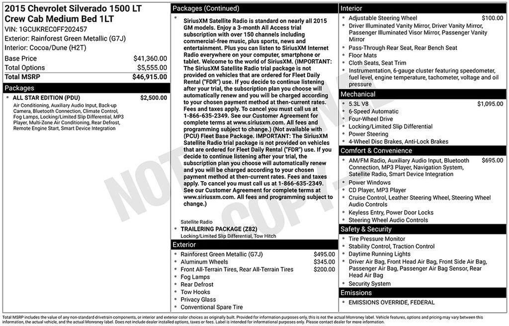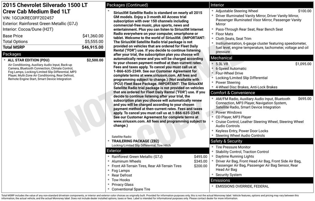 Silverado 1500 LT LT1, EcoTec3 5.3L V8, 6-Speed Automatic Electronic with Overdrive, 4WD, Cocoa/Dune Cloth.