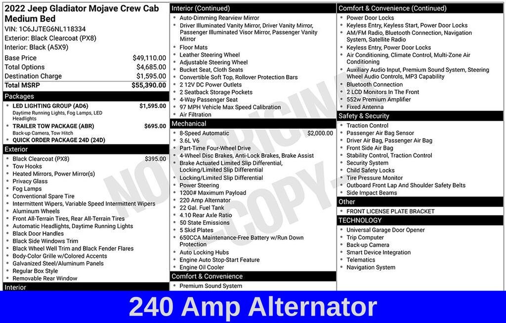 Black Clearcoat 2022 Jeep Gladiator Mojave 4WD 8-Speed Automatic 3.6L V6 24V VVT